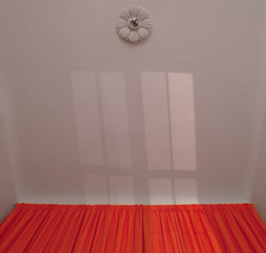 I had to stay in bed several weeks and was observing the light changes and the different colours of the light in the bedroom. The camera had been my tool all my life, so light conditions and white balances was always part of work, but I had never before seen the changing colours of the light this clearly. I started to document it lying in bed. Later, in the darkness of the winter, when I was working on a show, I looked through all these hundreds of images, and thought of that great experience; every time I opened my eyes during my illness, I saw a different colour of the sleeping room. It was all so clear and I could see it in the images. I decided to cut it all down to a triptych, and choose some images of the ceiling and the lamp, and thought of William Egglestones light bulb in the red room.